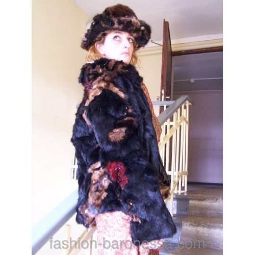 Застежка-молния дополнительно укреплена планкой из тонкой черной кожи. Вся шубка вручную расшита несколькими видами бисера и стекляруса, что придает ей дополнительную изысканность, подходящую даже к дорогому вечернему туалету. А особая износоустойчивость использованного меха делает ее незаменимой даже при пасмурной погоде - капли дождя одним движением руки легко стряхиваются с меха, не повреждая его структуру.